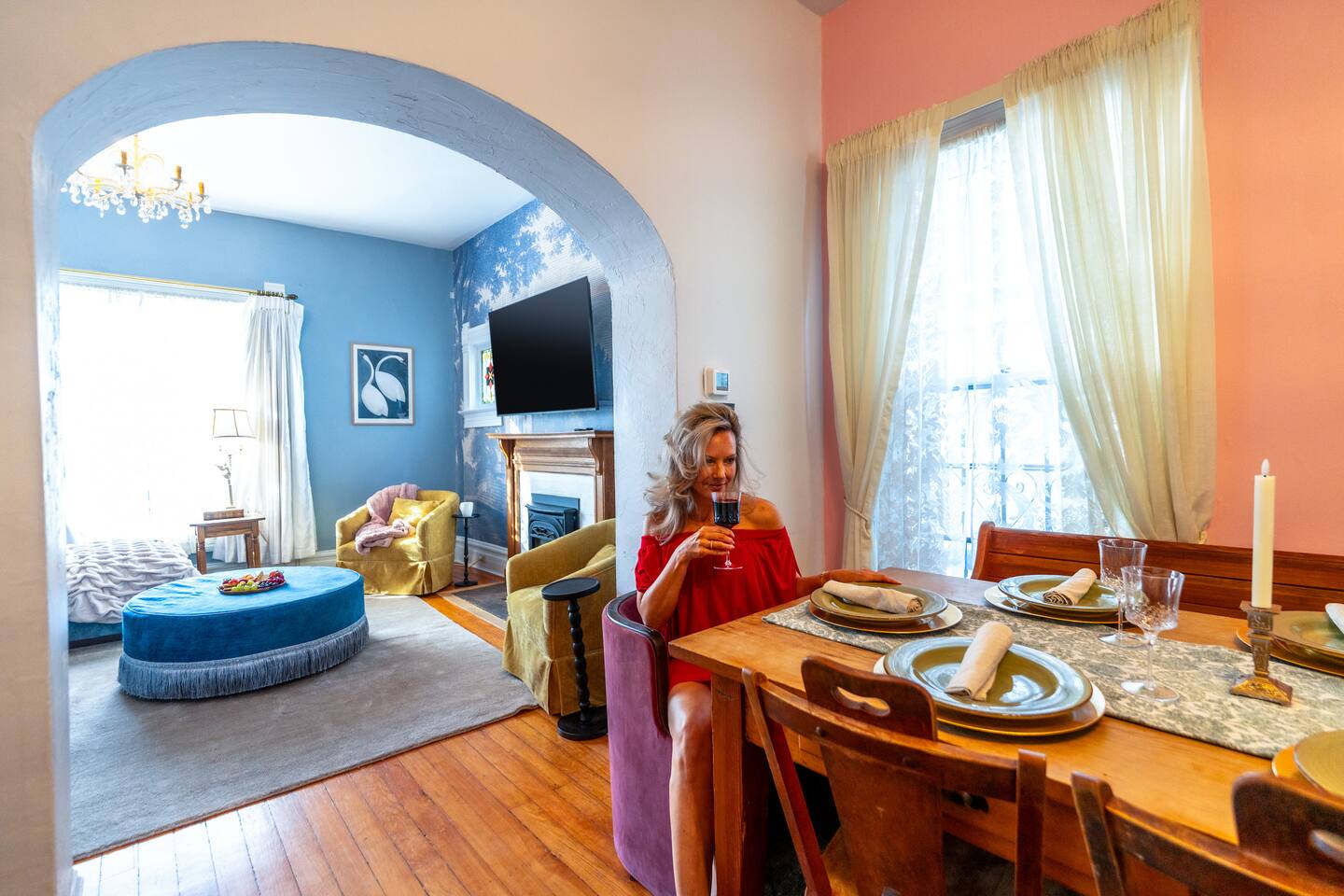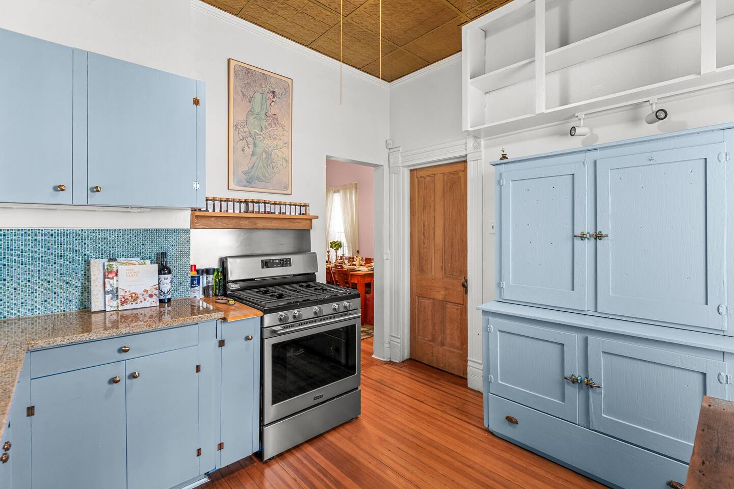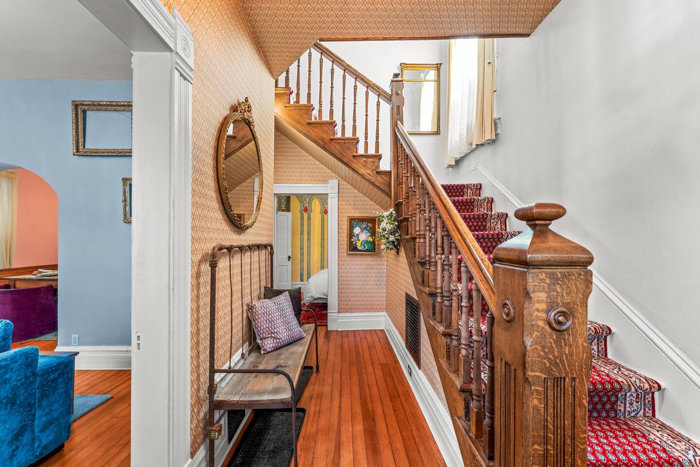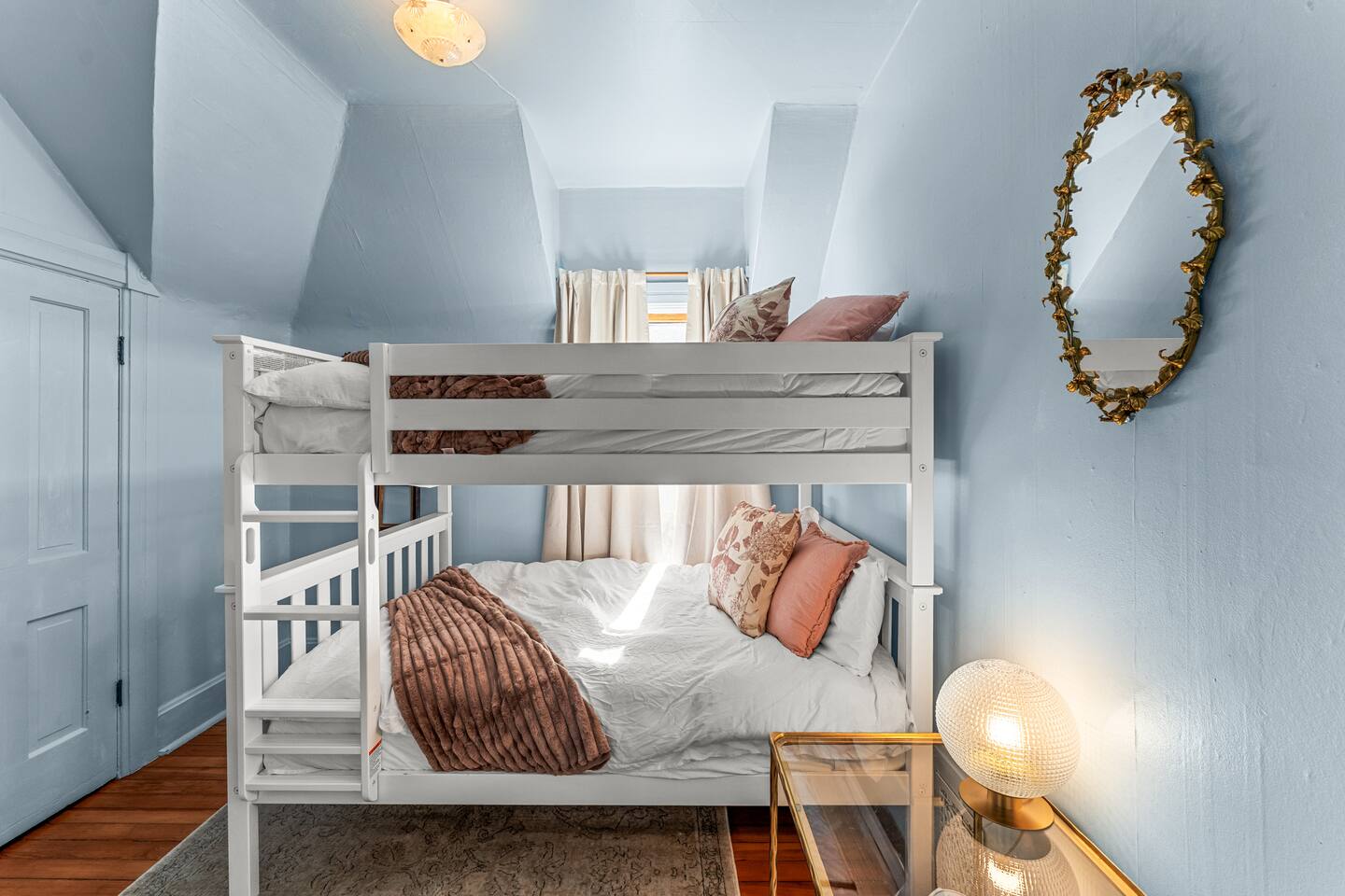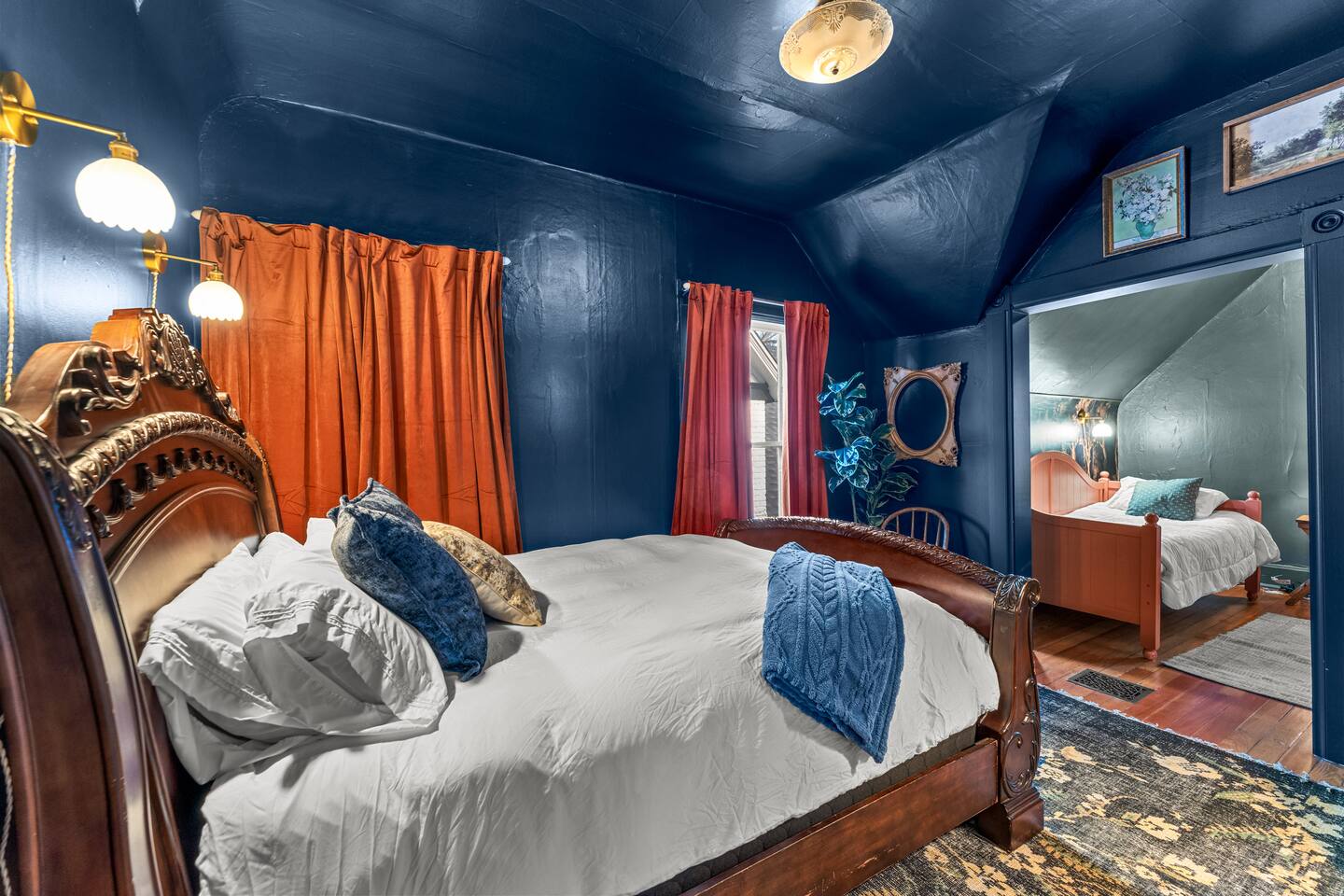 You'll be sleeping in: ✔ Bedroom 1 (Main floor) : Queen Bed ✔ Bedroom 2 (Primary Upstairs): King Bed ✔ Bedroom 3 (Bunk Room): 2 Full (Bunk) Beds ✔ Bedroom 4: 1 Queen Bed and 1 Twin Bed This home is 127 years old. Each room has high ceilings, original wood floors and original tile ceiling (in the kitchen). We've tried to maintain the integrity of this Victorian Queen. It's a warm, cozy, antique of a home that we love. The rooms have been professionally designed and Kelsey (owner) has done multiple murals throughout!
